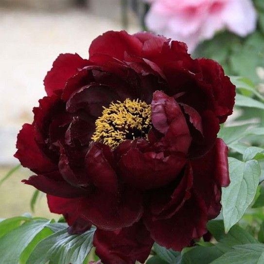 Пион древовидный Хатцугарасу (Hatsugarasu) по праву считается одним из самых выдающихся представителей своего рода. Его уникальная и редкая окраска вызывает восхищение и привлекает внимание. Крупные цветы, напоминающие лотос, достигают диаметра до 30 см и состоят из нескольких рядов изящных, гофрированных махровых лепестков. Глубокий вишнево-бордовый цвет лепестков прекрасно сочетается с ярким горчично-медовым центром. Цветы источают чарующий аромат, в котором можно уловить нотки чайной розы, корицы, цитруса и меда. Темно-алые цветы создают эффектный контраст на фоне свежей зелени сизо-мятных листьев.