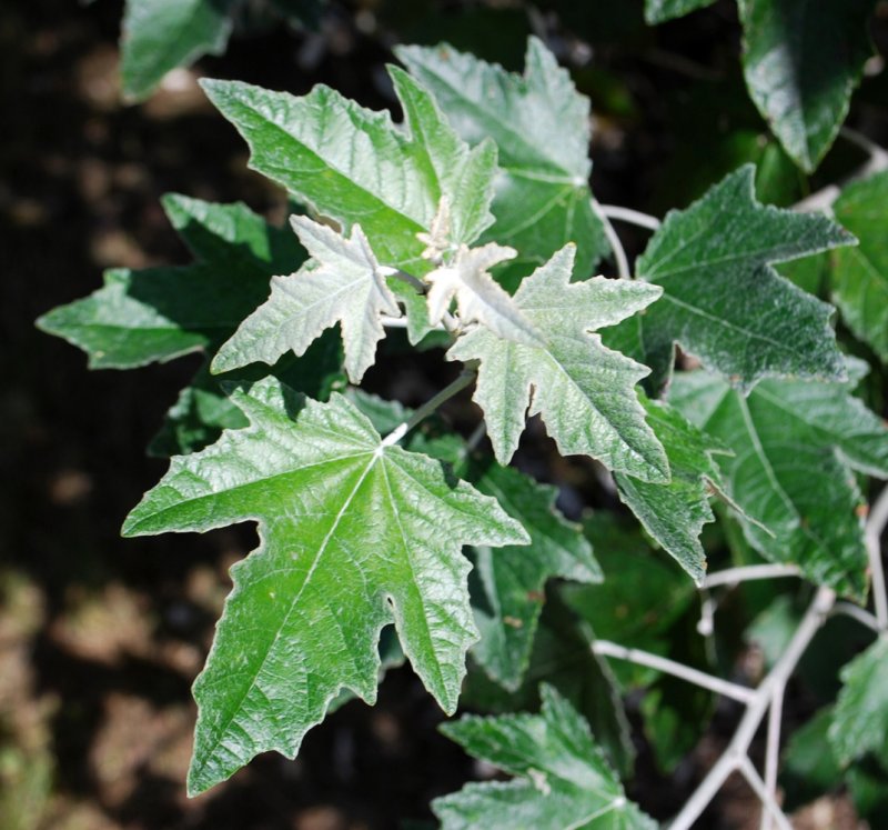 Белый тополь — это дерево с широкой раскидистой кроной, достигающее высоты до 30 метров. Его кора серо-зеленая и гладкая, но с возрастом покрывается глубокими трещинами. Молодые побеги имеют бело-войлочное опушение. Листья плотные, от овальных до пальчато-лопастных, с крупными зубцами, сверху темно-зеленые и блестящие, а снизу опушенные и бело-войлочные. Осенью листья приобретают лимонно-желтый оттенок. Тополь белый может переносить засушливые условия, но лучше всего растет на плодородных и хорошо увлажненных почвах. Его серебристая листва придает дереву особую декоративность.